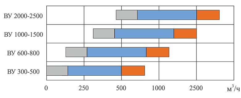 Типоразмер и производительность вентиляционных установок